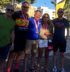 Congratulations to the CBC contingency flying the flag out in Mallorca — with Russell Todd, Barry Doggett, Jim Bush, Fayne Brenner and Owen Bartlett.